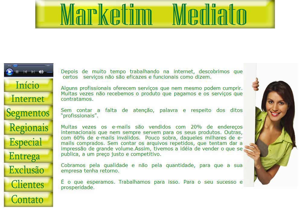 Esse é um exemplo parecido com o 2°. A diferença, é que quando o site é visitado, o áudio é ligado imediatamente. Mas também há a opção de silenciá-lo. Essa opção é importante, dependendo da velocidade de conexão do visitante. Também é possível inserir áudios de até 3 minutos.